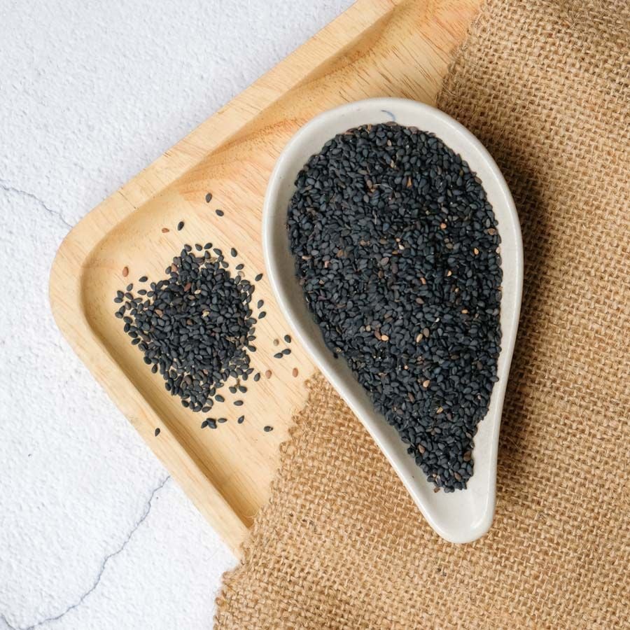 Đừng xem thường những hạt mè bé xíu! Mè đen chứa hàm lượng anthocyanin cao, cùng với vitamin E và canxi gấp 6 lần sữa, giúp da giữ nước, tóc bóng mượt và cơ thể dẻo dai.